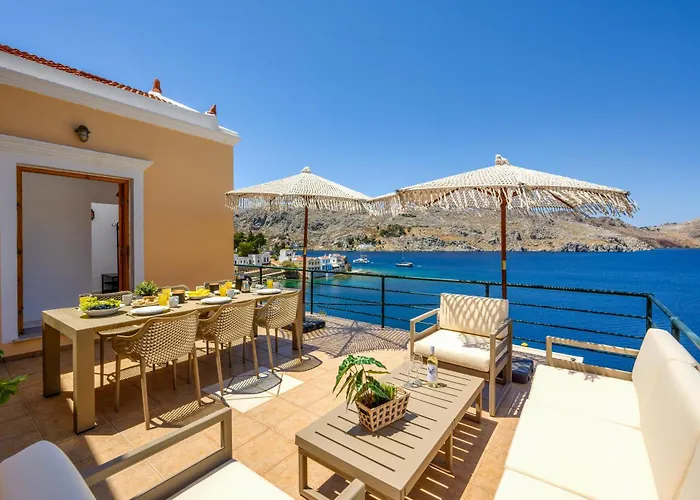 Nimporio View VillaはΓυάλα Beachから徒歩で5分で,シミ港から歩いて25分で行ける場所にあります. ヴィラには,金庫,パティオ とバルコニ-を設けたル-ムがあります.